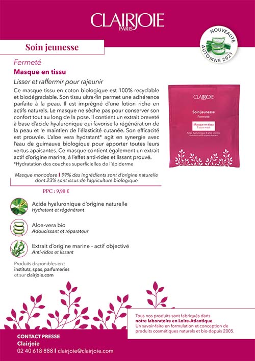 | Nouveauté Automne 2021. Le masque en tissu bio fermeté Opérance® |